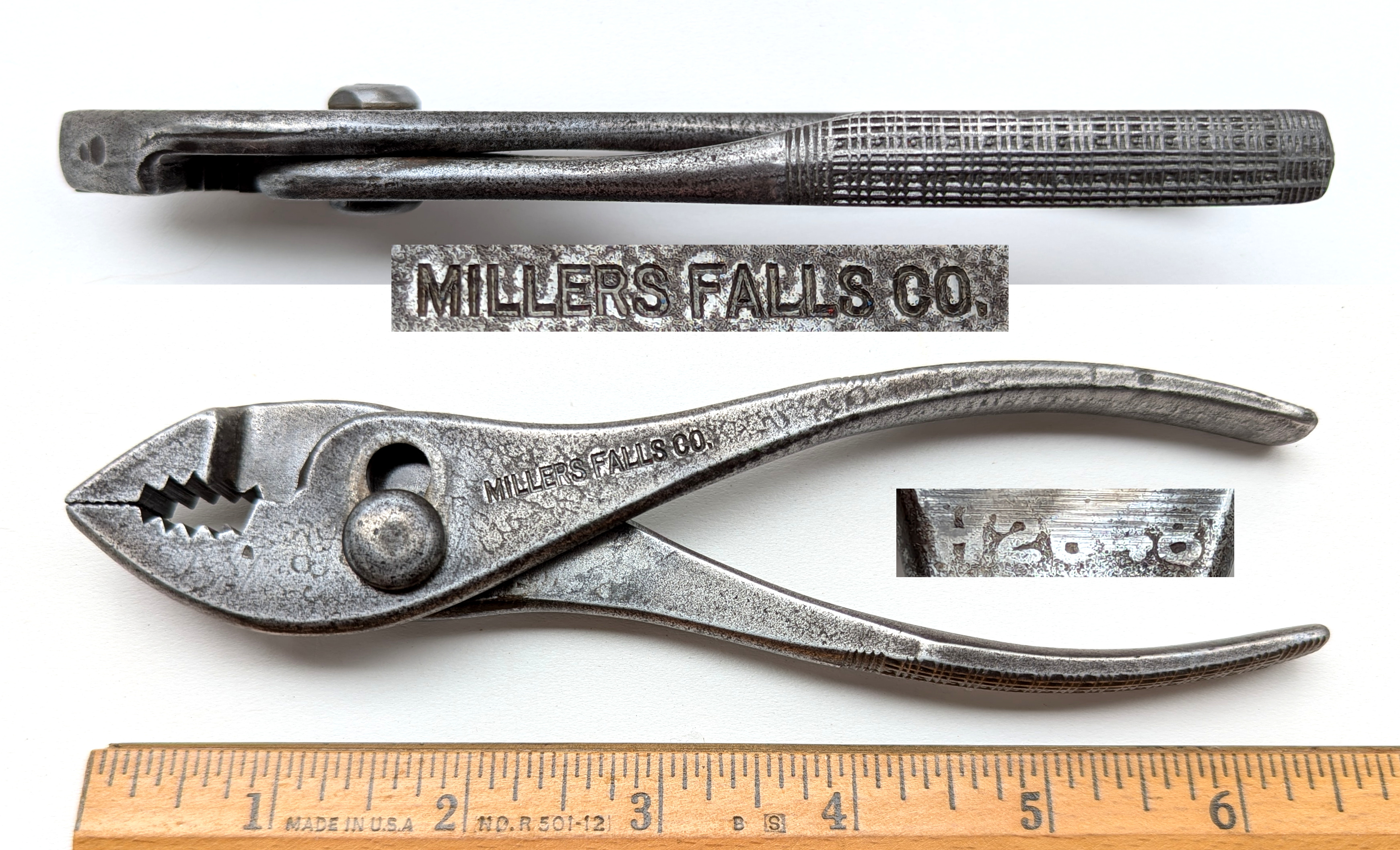 Fig. 51 shows a recent pair of Crescent 1033-6 needlenose pliers, marked "U.S.A." on the pivot. (The markings are etched rather than stamped and are a bit difficult to read.)