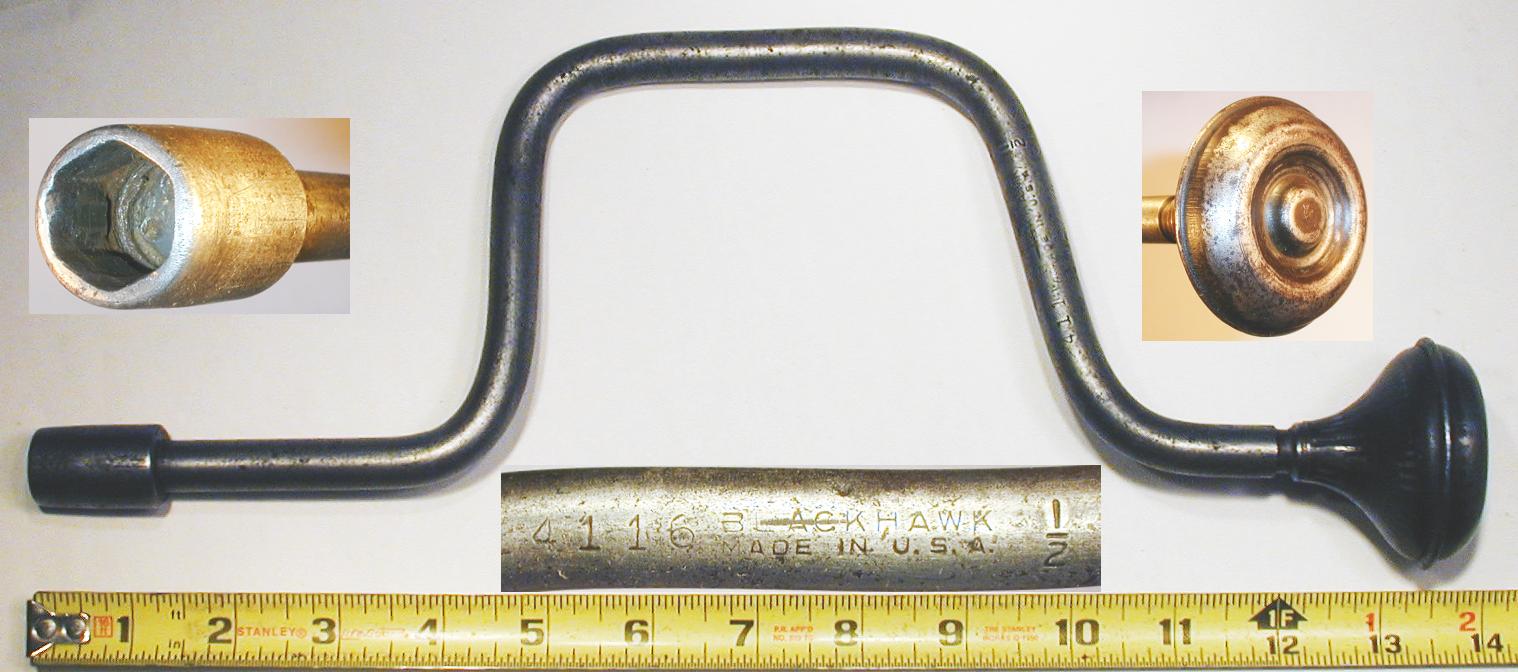 Fig. 48 shows an early Blackhawk 4116 1/2 speeder socket wrench, stamped "Made in U.S.A." on the shank near the end piece.