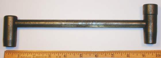 Our next example shows a very popular early style of socket wrench, with two sockets in a "T" at one end and a single socket at the other.