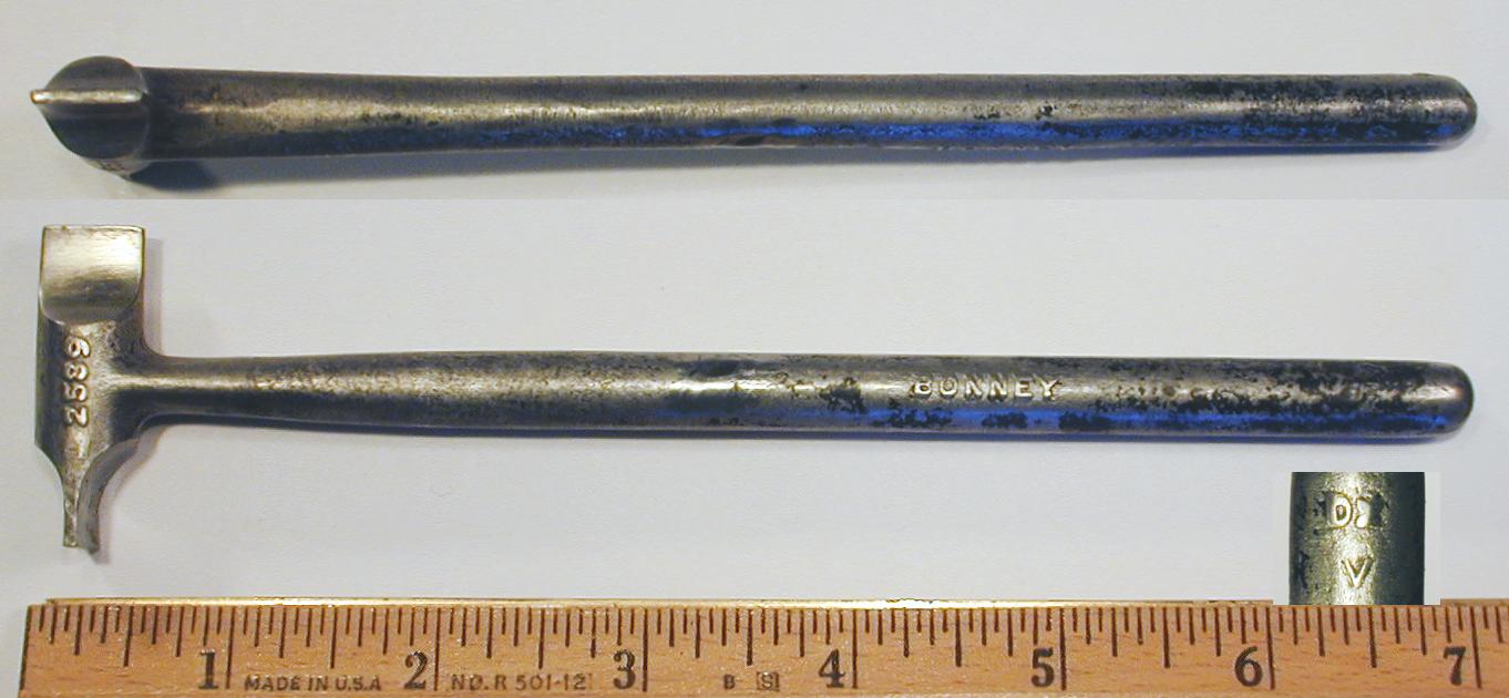 The paneled shank has forged-in markings on both sides, with "Bonney U.S.A." and the model and sizes on the front, and with "Bonaloy" on the back side.