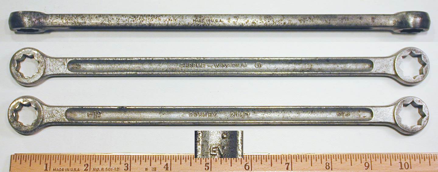 Fig. 380 shows a later Bonney D2857 7/16x1/2 double-square box wrench.
