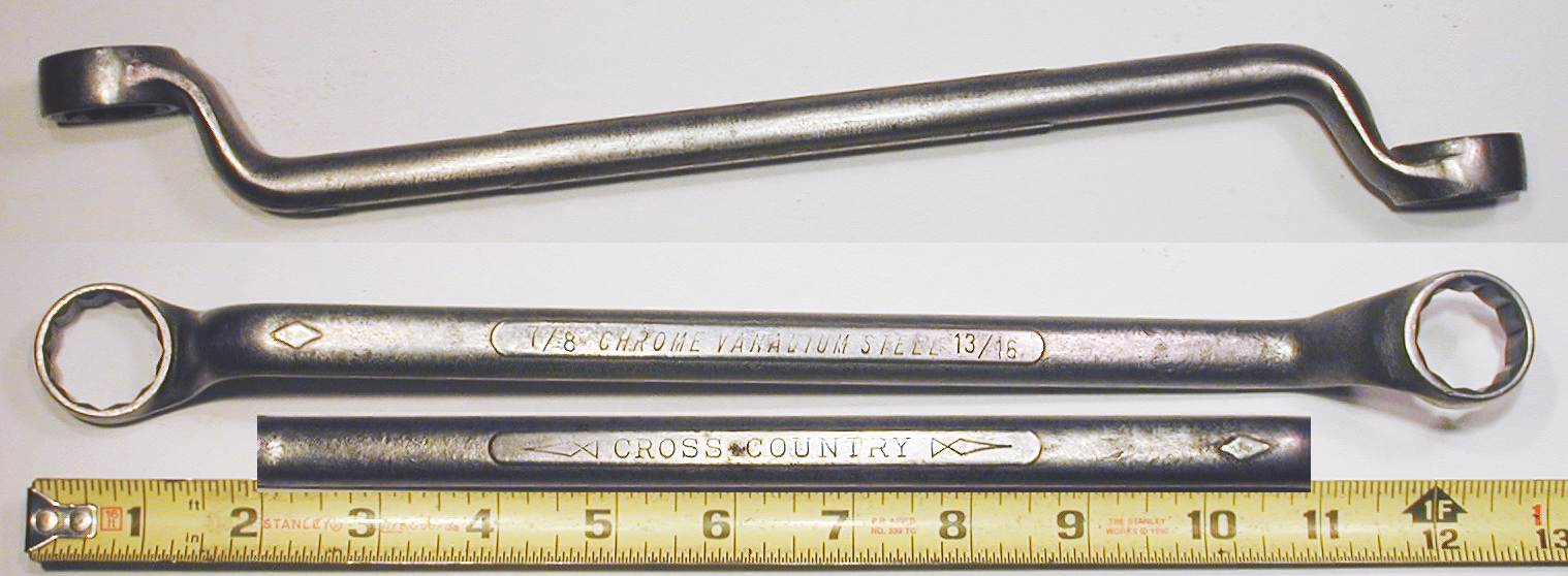 a Cross Country 13/16x7/8 offset box-end wrench with raised oval panels,