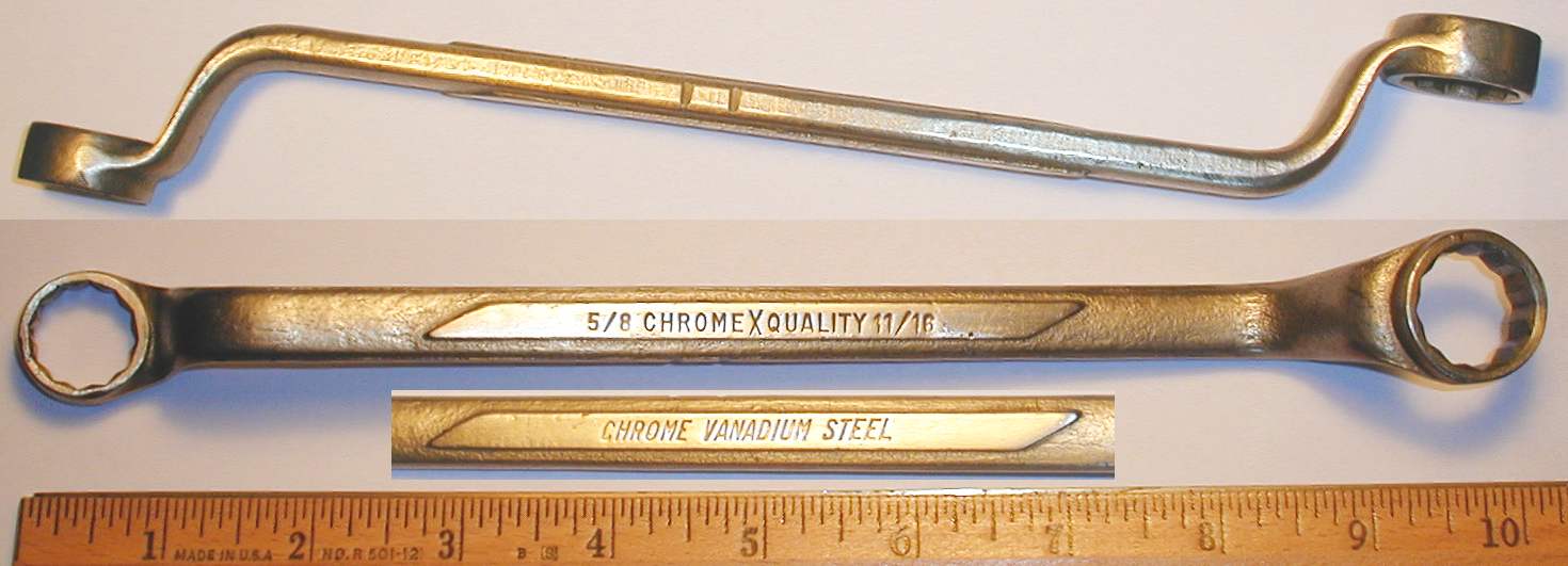a ChromeXQuality 5/8x11/16 offset box-end wrench with raised parallelogram panels,