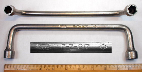 The offset shank of this wrench was designed to clear obstacles when servicing the fourth connecting rod of the Model T Ford.