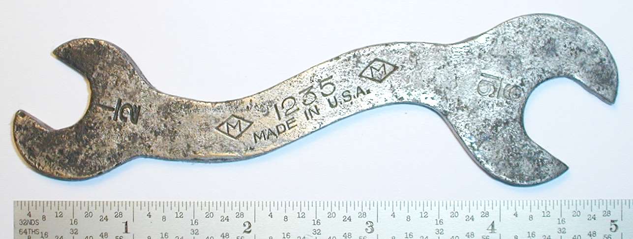 Fig. 95 shows another example of the Mossberg offset socket wrenches, a double socket wrench with 19/32 sockets of square and oval cross-section, stamped with the M-Diamond logo on the shank.