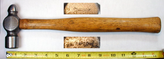 The end of the handle is curved with a slightly sharpened edge, allowing it to be used for removing a tire from the rim. The 1918 Herbrand catalog lists a No. 165 "All Steel Ball-Pein Hammer" very similar to this example.
