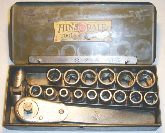 Hinsdale's earliest products included socket sets of pressed-steel construction, as sets of this type were very popular as automobile tool kits. After its early production of pressed-steel socket sets, Hinsdale soon moved to producing hex-drive and square-drive socket sets using machined and broached sockets.