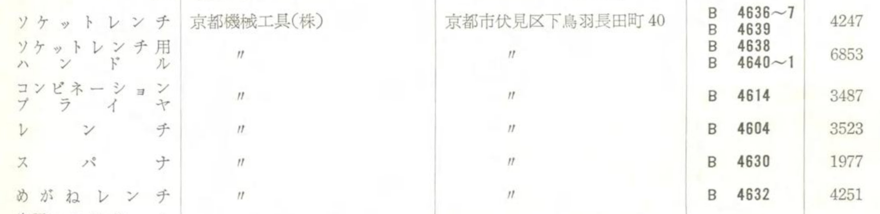 | ス パ ナ | 39.12.17 | 京都機械工具㈱ | 京都市伏見区下馬羽長田町40 | B4630 | 1977 |