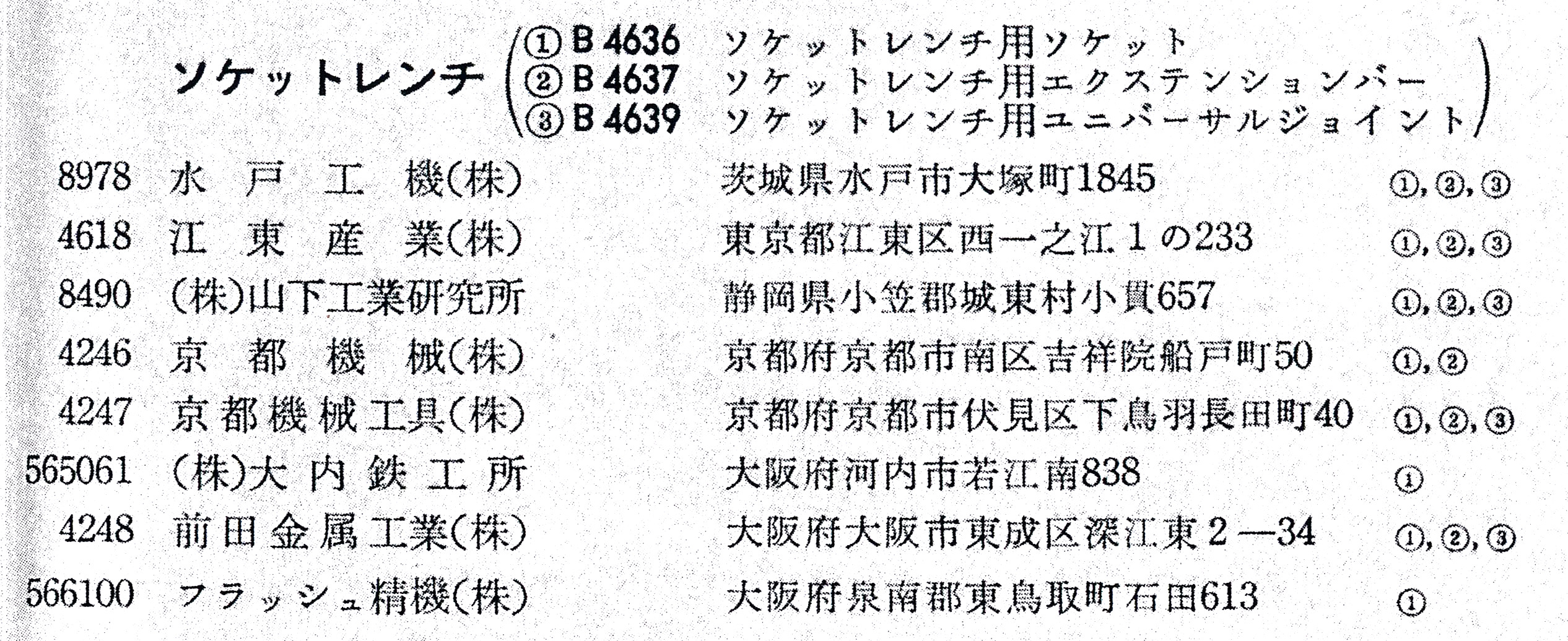27.5.13 | 安中工具㈱ | 大阪府枚岡市四条町475 | B4604 |