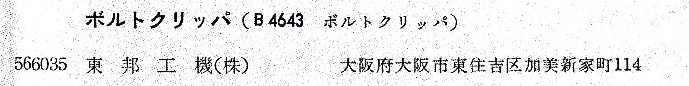 | 566035 | 1985.10.16 | 東邦工機㈱ | 奈良県大和郡山市小泉町2500番地 | B4643 |