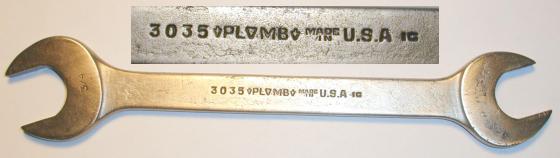 An automotive supplier listing of Plomb tools from around 1930 also shows this type of wrench in an Oxxyy series, where "xx" and "yy" were the opening sizes in 16ths. However, the particular size for this wrench wasn't among the listed O-series models; the standard wrenches went from O1112 (11/16x3/4) to O1314 (13/16x7/8).