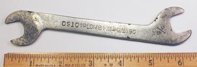 Fig. 13 shows an early Plomb model 1214 3/4x7/8 open-end wrench, stamped "PLOMB TMCO" (using a round "O") and "Los Angeles" on the shank.