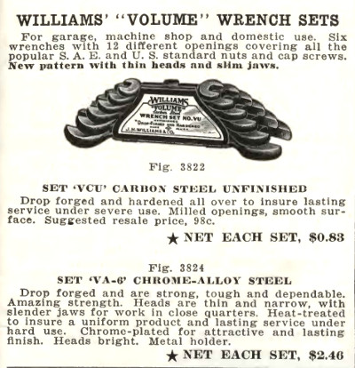 Our earliest catalog reference for the Williams water-pump wrenches is from an A-341 catalog update booklet