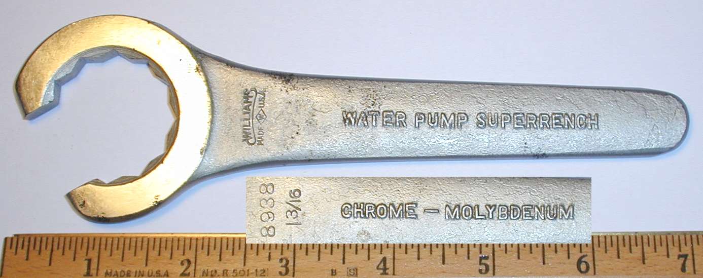 a Williams 8938 1-3/16 water-pump wrench stamped with the Williams name and "Made U.S.A."
